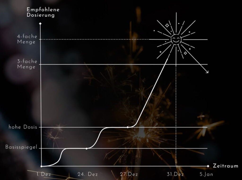 Wenn es sich um ein planbares Ereignis wie Silvester handelt und man ohnehin schon CBD gibt, dann ist die ad hoc Gabe umso effektiver. Denn sobald der CBD-Basispiegel einmal aufgebaut ist, “hilft mehr auch mehr”.