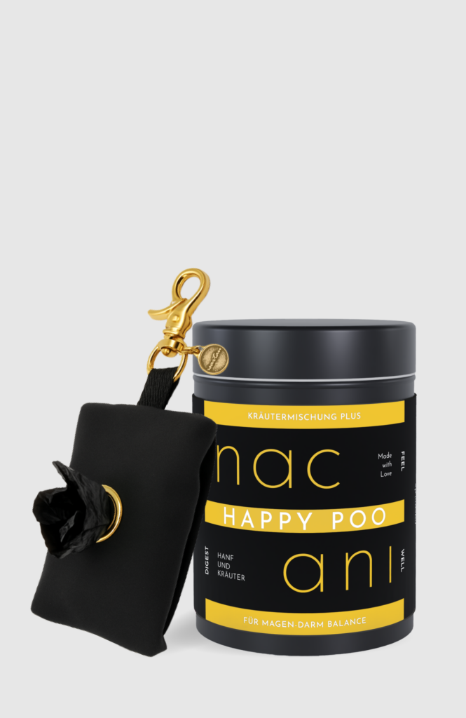 Ein gesunder Darm ist also die Basis für ein glückliches Hundeleben – und genau da setzt unsere Kräutermischung HAPPY POO an. Mit Flohsamenschalen, Ulmen- und Weidenrinde, Kamille, Fenchel, Anis und Kümmel bringt sie sanft das Verdauungssystem ins Gleichgewicht. Pektin und Bentonit unterstützen die Darmflora und helfen, Giftstoffe zu binden. Hanfblattpulver mit CBD sorgt für zusätzliche Beruhigung im Bauch.