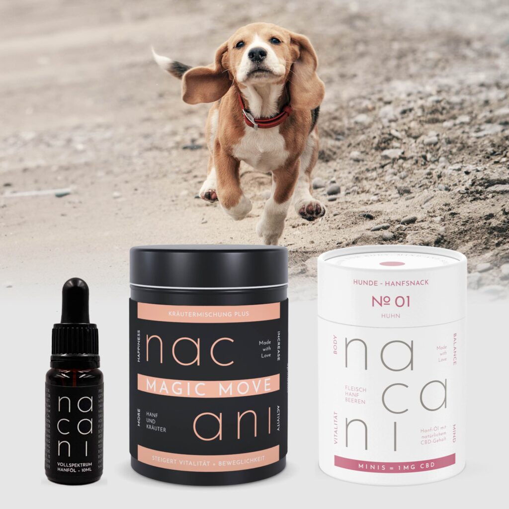 Als Ergänzung und zur Förderung des allgemeinen Wohlbefindens empfehlen wir nacani. Unsere Produkte wurden gemeinsam mit Tierärzten und Physiotherapeuten entwickelt und sind darauf ausgelegt, auf natürliche Weise die Gelenkgesundheit und Beweglichkeit deines Hundes zu unterstützen – für mehr Vitalität und Freude im Alltag! Hier findest du unsere Auswahl an Produkten speziell für den Bewegungsapparat.