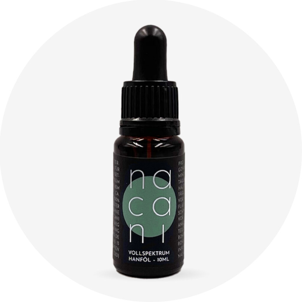 The nacani CBD Oil 5.6% is available in 10 ml, 20 ml, and 30 ml bottles.
